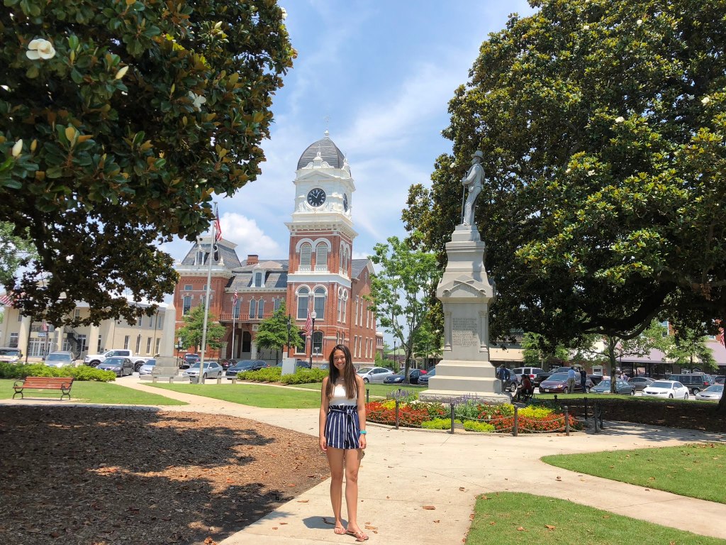 - It’s very similar to Covington. It’s a very quaint little town and there are tons of shops and boutiques – the area we always frequent is N Broad Street and that road has things like Scoops Ice Cream, Your Pie, a coffee shop, Southern Roots Outfitter, and tons more! They also have a really pretty clocktower.
