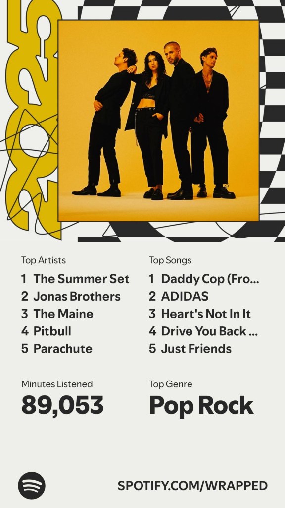 2025 Playlists Posted byanchoredmusingsMarch 18, 2026Posted inMusicTags:Music, Now Listening, Spotify When I think about 2025, a few things stand out: Daddy Cop, The Summer Set, and Mr. Worldwide. Not necessarily new music, but new to me in 2025 Share this: Share on X (Opens in new window) X Share on Facebook (Opens in new window) Facebook Like Loading... Related